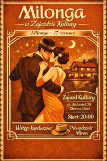 Zapraszamy na czerwcową odsłonę cyklicznych milong w Zajeździe Kultury — wieczór tanga, spotkania i wspólnego rytmu, tym razem w letniej, rozgrzanej atmosferze długiego wieczoru.