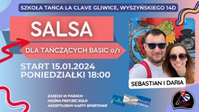 Seba – sprawca całego zamieszania, od lat związany z salsą. To dzięki niemu działają dwie wspaniałe, klimatyczne lokalizacje, w których możecie rozwijać swoje pasje na najwyższym poziomie, poznawać wspaniałych ludzi i świetnie się bawić. Darka – zawsze ostatnia schodzi z parkietu. Pełna energii i pozytywnego nastawienia. Pod ich okiem dorastały pierwsze pokolenia gliwickich salsowiczów, które dzisiaj tworzą fantastyczną, zgraną ekipę