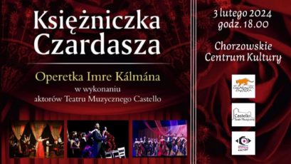 Królowa austro-węgierskiej operetki! To tętniące czardaszem i rewią budapesztańskie Variété- urocze tancerki, knajpiani utracjusze i wreszcie ognisty romans Księcia Edwina z piękną szansonistką Sylvią Varescu. To historia miłości ponadczasowej i porywającej, podszytej skandalem mezaliansu. „Artystki z Variété”, „W rytm walczyka serce śpiewa”, „Czardasz Sylvii” to zaledwie kilka utworów spośród ferii przebojów tej operetki. „Księżniczka Czardasza” to coś więcej niż historia o dwojgu zakochanych w sobie ludzi. Napięcie dramatu trudnej miłości w przezabawny sposób rozładowują drugoplanowe postacie. Urzekają widza dowcipnymi dialogami i gagami, nie szczędząc żartów i odniesień do czasów współczesnych. „Księżniczka Czardasza” Teatru Muzycznego Castello swoją premierę miał w styczniu 2014 roku na Zamku w Mosznej.
