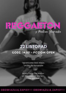 Przenieś się w rytm gorących dźwięków i pulsujących uderzeń podczas naszych warsztatów reggaeton z Pauliną Glapińską, która swoją pasją i doświadczeniem zagwarantuje niezapomniane przeżycia.